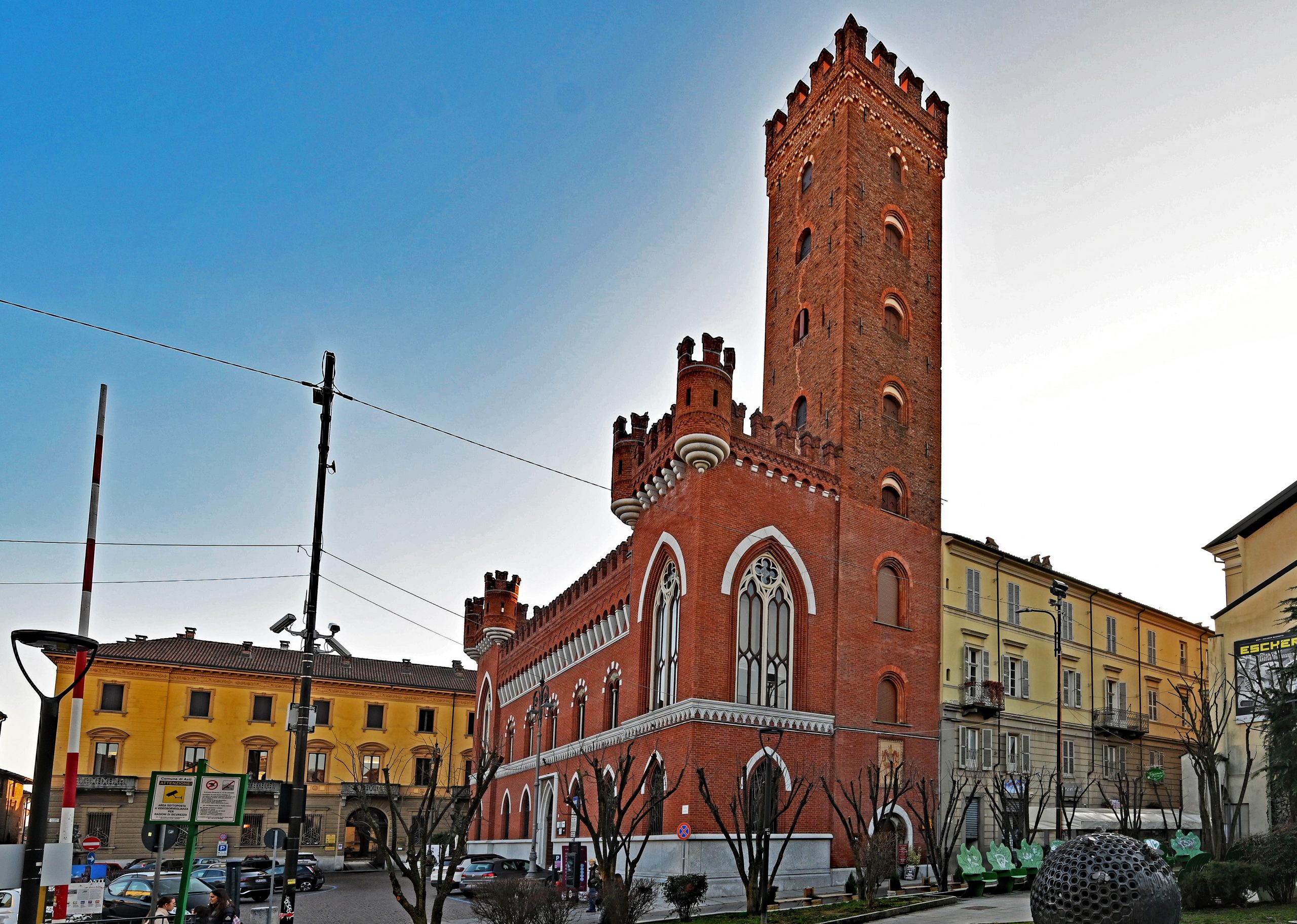Einer der markantesten Geschlechtertürme der Stadt ist der Torre dei Natta, der am Ende des 12. Jahrhunderts errichtet wurde. Ursprünglich stand er frei und wurde erst später in den Palastkomplex integriert. Sein quadratischer Grundriss, die leicht nach oben verjüngte Form und der Abschluss mit einem Fries aus doppelten, tropfenförmigen Hängebögen verleihen ihm eine strenge, zugleich elegante Erscheinung. Er ist ein klares Beispiel der Asti-Gotik und prägt das historische Zentrum nachhaltig.