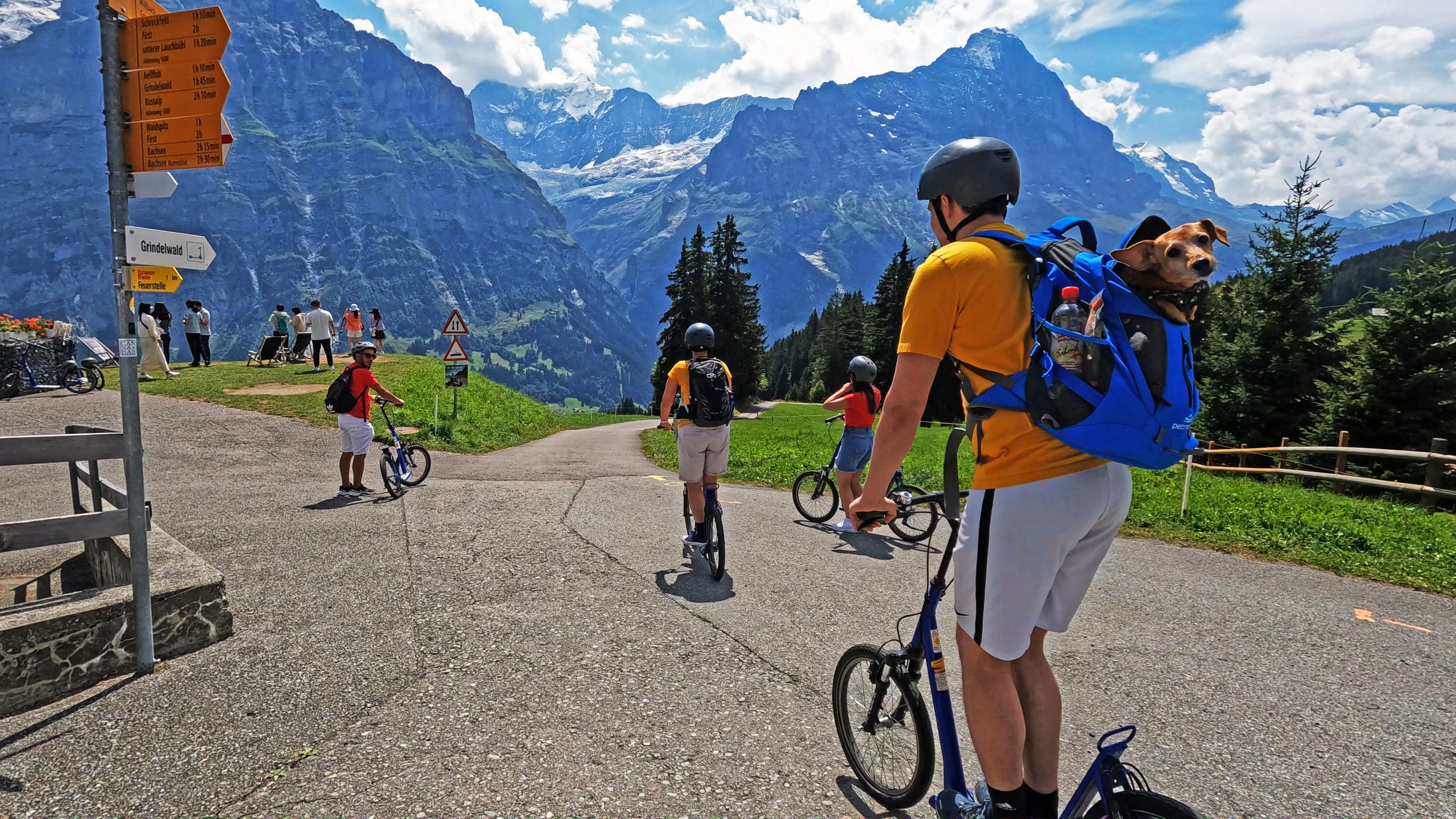 • Hunde auf Abwegen: Hunde können in der Gondel problemlos mitgenommen werden. Für die Abfahrt mit dem Trottibike empfiehlt sich – wie bei uns – ein spezieller Hunderucksack, damit die Vierbeiner sicher und entspannt mit ins Tal kommen.