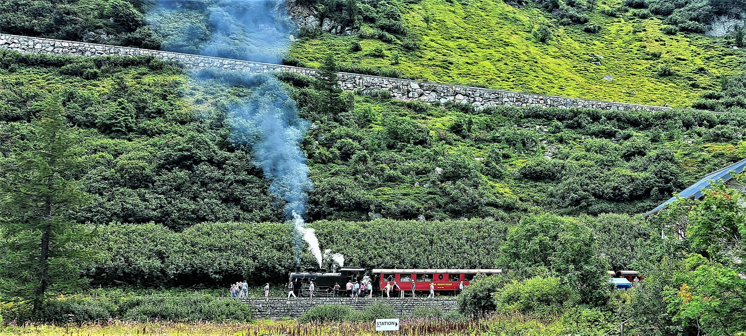 Wie durch ein Zeitfenster erblicken wir eine der legendären Dampflokomotiven der Furka-Bergstrecke. Ob es die „Furkahorn“ oder die Nr. 4 ist – diese stählernen Zeugen der Eisenbahngeschichte sind das Herzstück der Strecke zwischen Realp und Oberwald. Dass einige dieser Maschinen, wie die HG 4/4, nach Jahrzehnten im fernen Vietnam in jahrelanger Kleinarbeit restauriert wurden, verleiht diesem Ort eine fast ehrfürchtige Atmosphäre.
