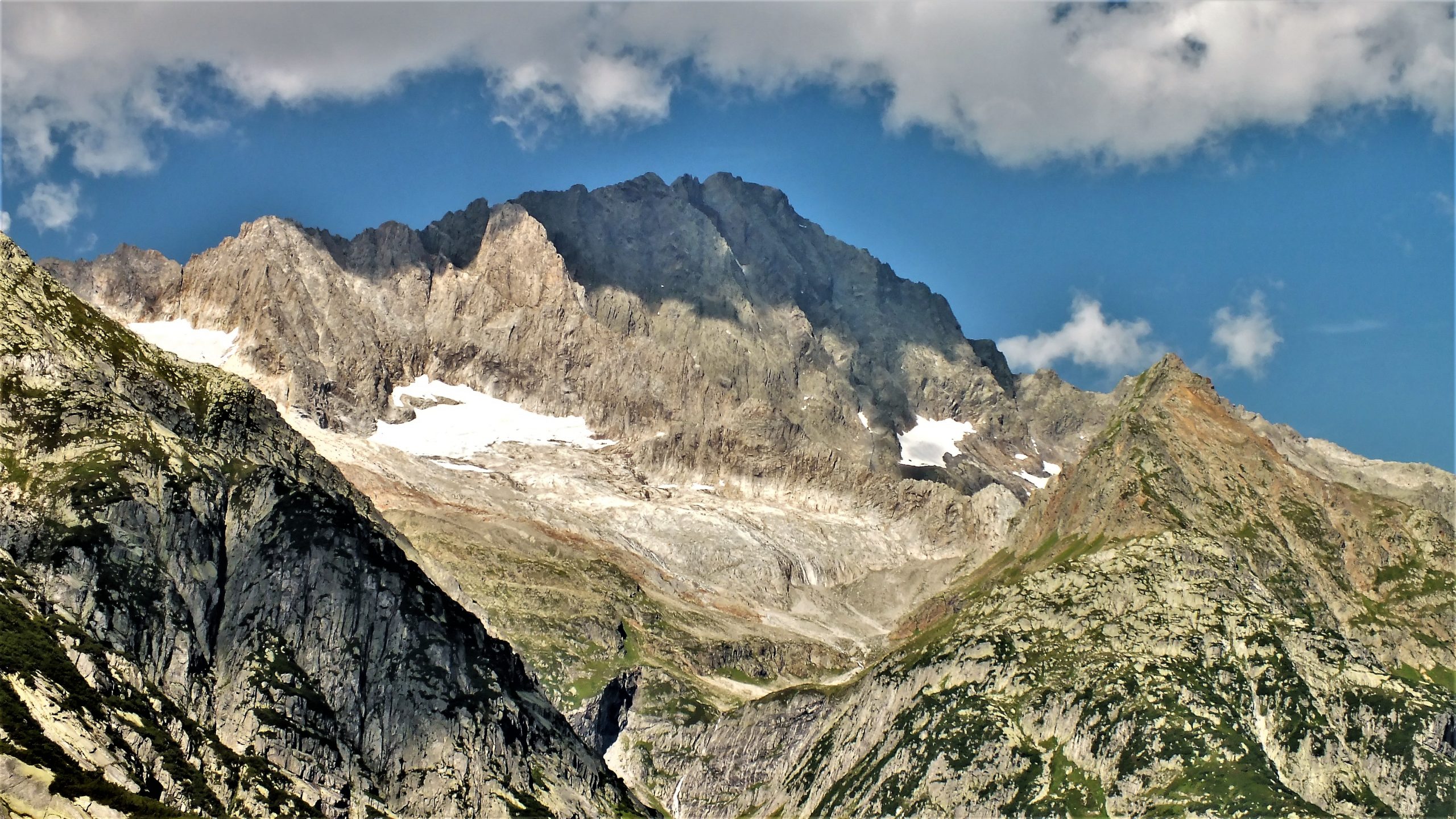 Der Blick nach Osten wird vom Sidelhorn eingerahmt, während im Westen das Aarmassiv thront. Das Oberaarhorn glänzt mit seinen gewaltigen Gletscherflächen so hell, dass es fast blendet. Rechts davon zieht sich eine filigrane, fast zerbrechlich wirkende Kette aus Felsnadeln und scharfen Zacken dahin – die Studerhörner und die Finsteraarhorn-Gruppe. Es sieht aus, als hätte ein Bildhauer mit feinstem Meissel den Grat in den Himmel gezeichnet.