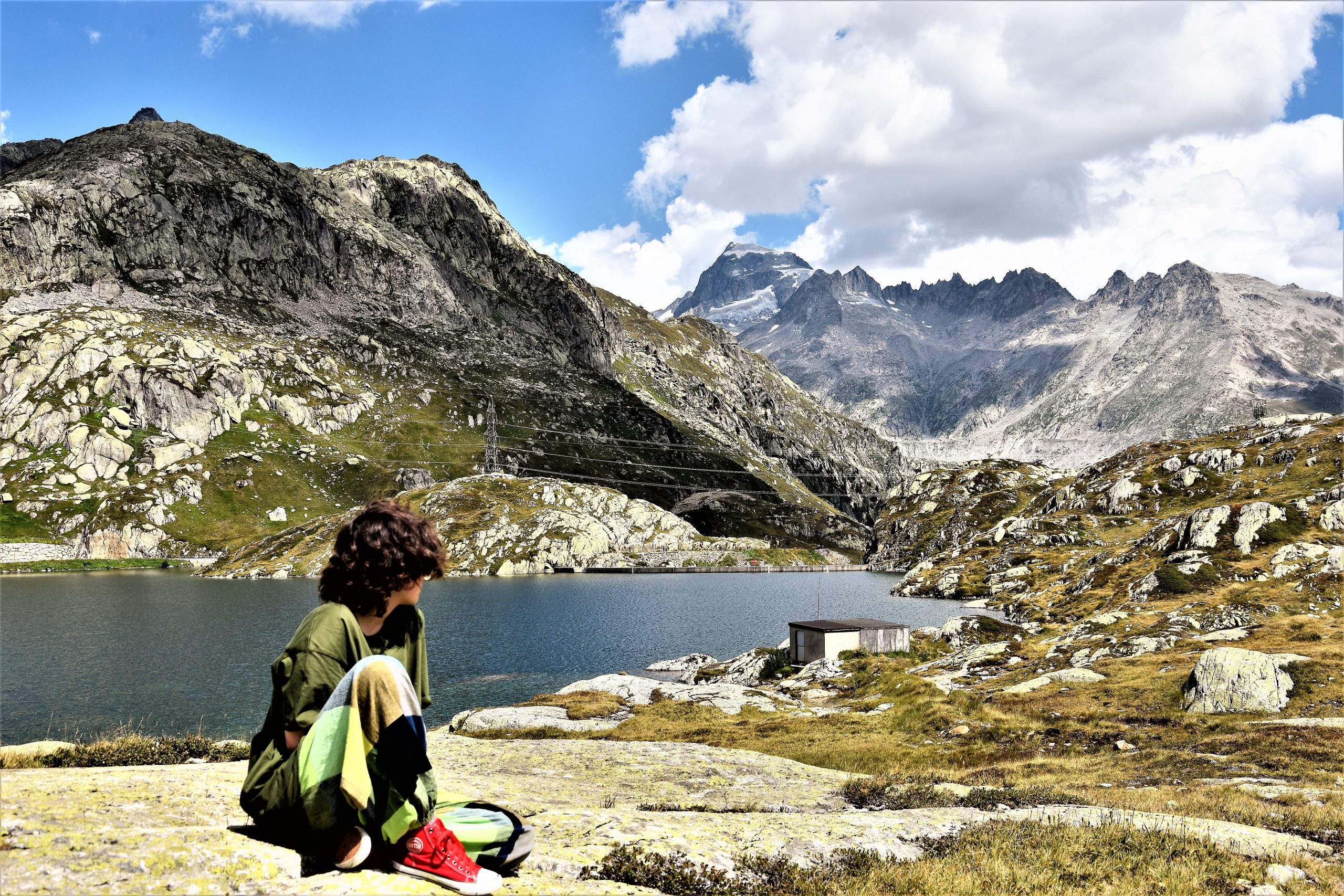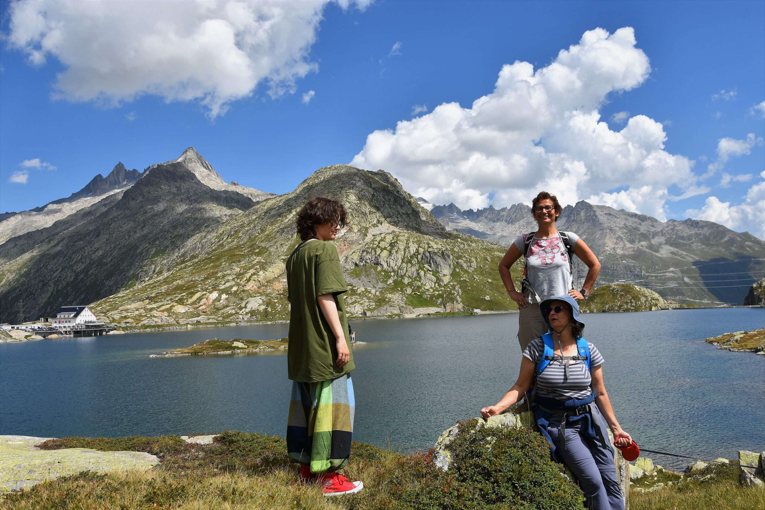 Die Strasse windet sich wie ein graues Band entlang des Guttannen-Massivs nach oben. Schon bald schimmert uns das erste tiefe Blau entgegen: der Räterichsbodensee. Die Landschaft hier oben ist so gewaltig, dass sie uns förmlich zum Anhalten zwingt. Wir steigen aus, und die Stille der Berge, nur unterbrochen vom fernen Rauschen der Wasserfälle, umhüllt uns sofort.
