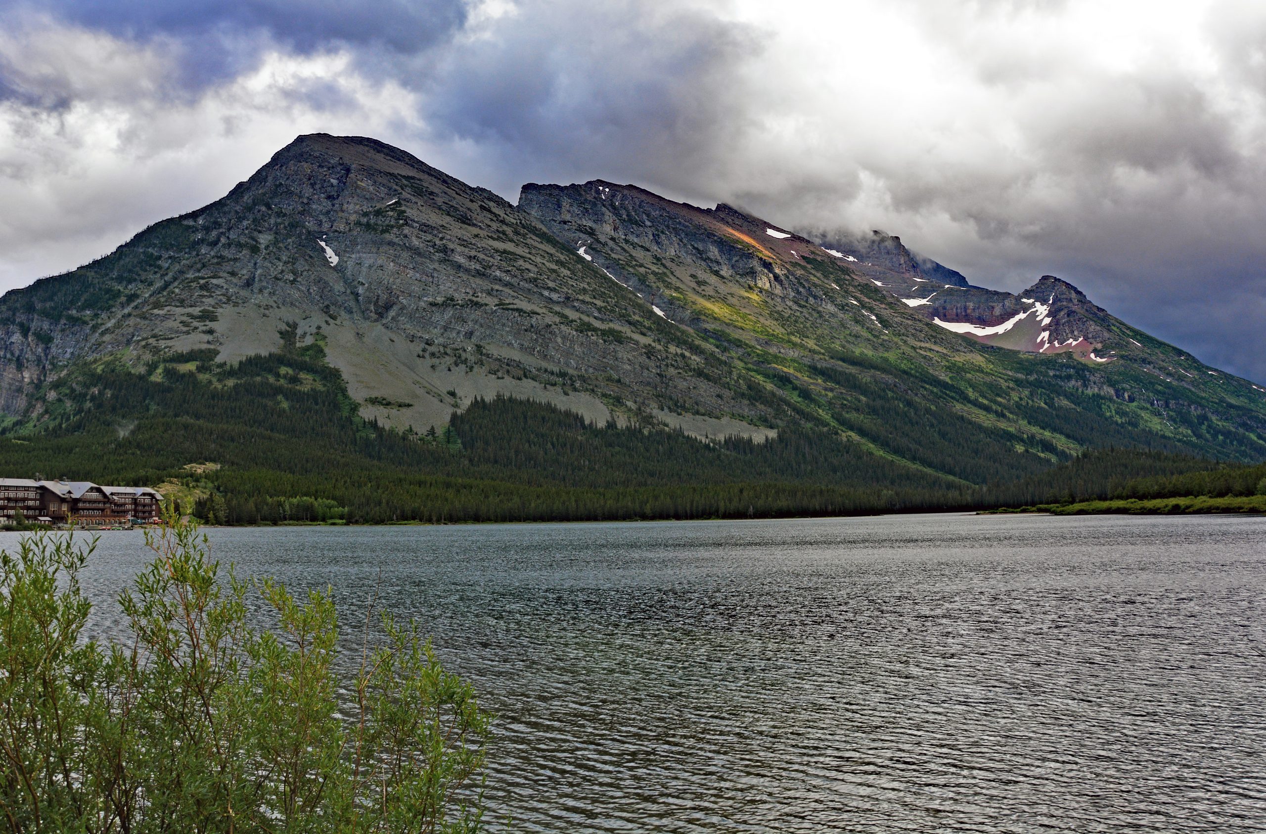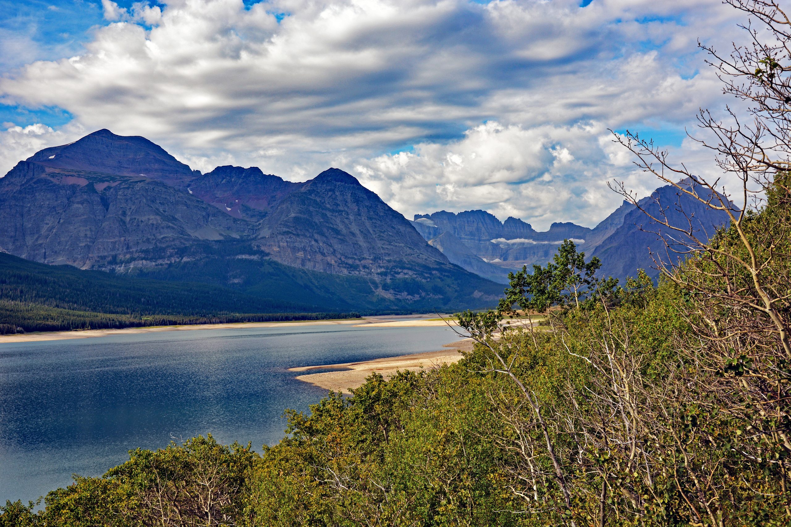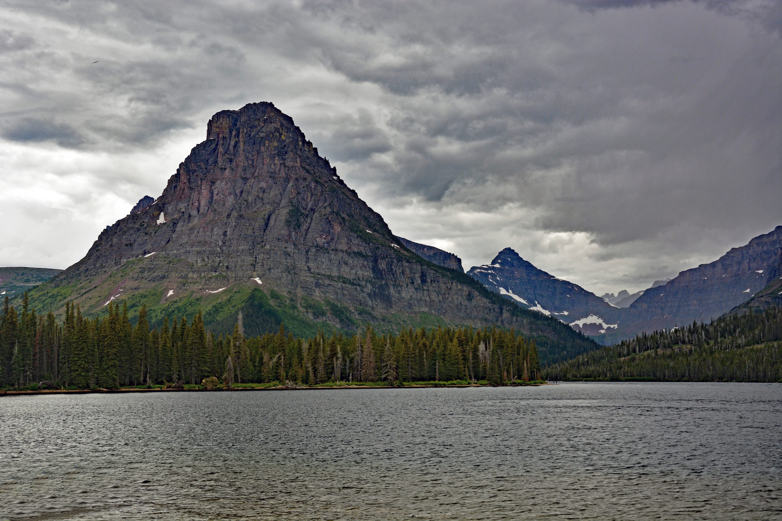 Später fuhr ich nach St. Mary Lake. Die Abendwolken rissen leicht auf, und über dem Wasser tauchte eine majestätische Reihe von Bergen auf: Red Eagle, Mahtotopa, Little Chief und Dusty Star Mountain, zart beleuchtet vom letzten Licht des Tages. Ein stiller Abschluss eines großartigen Tages.