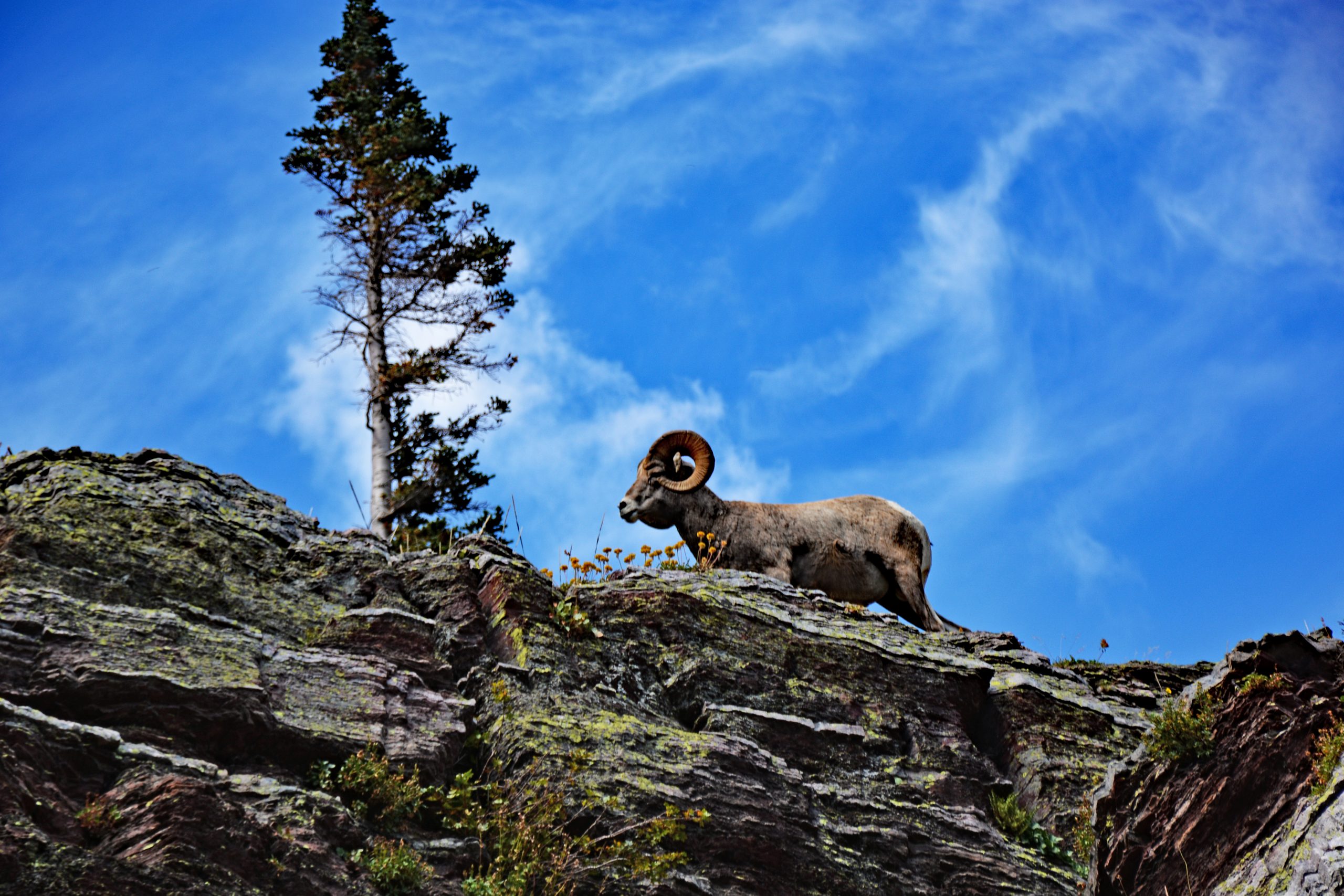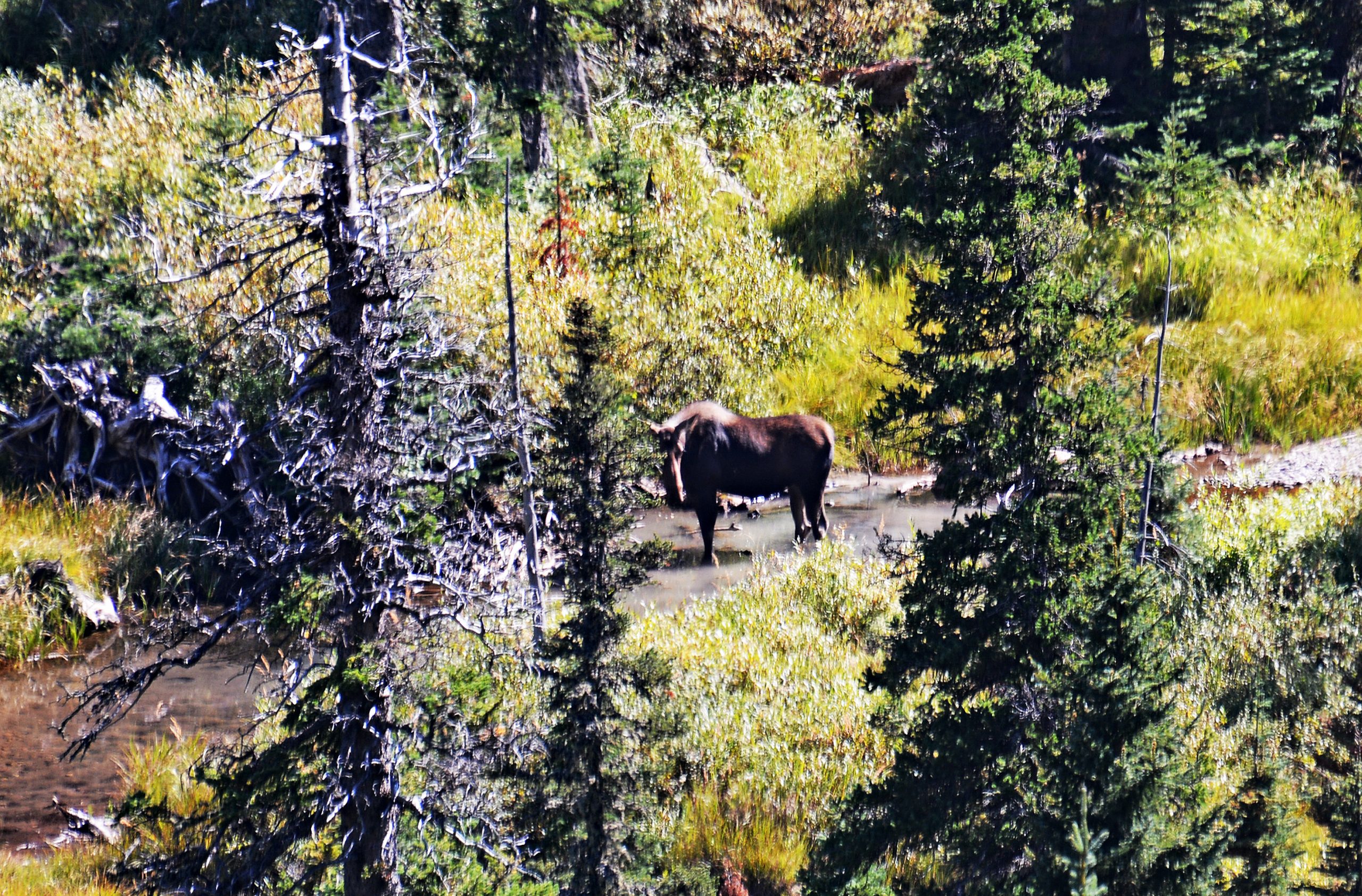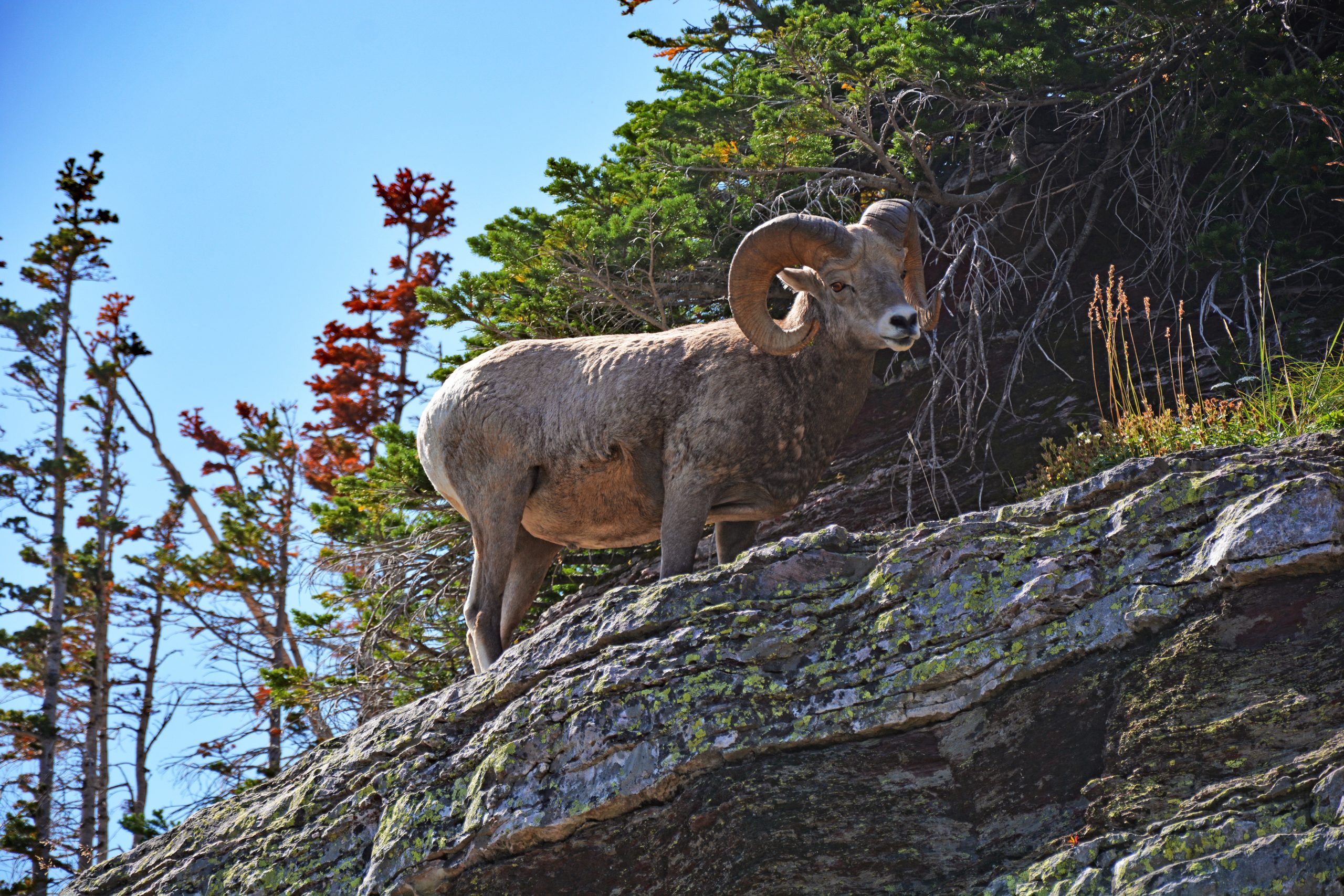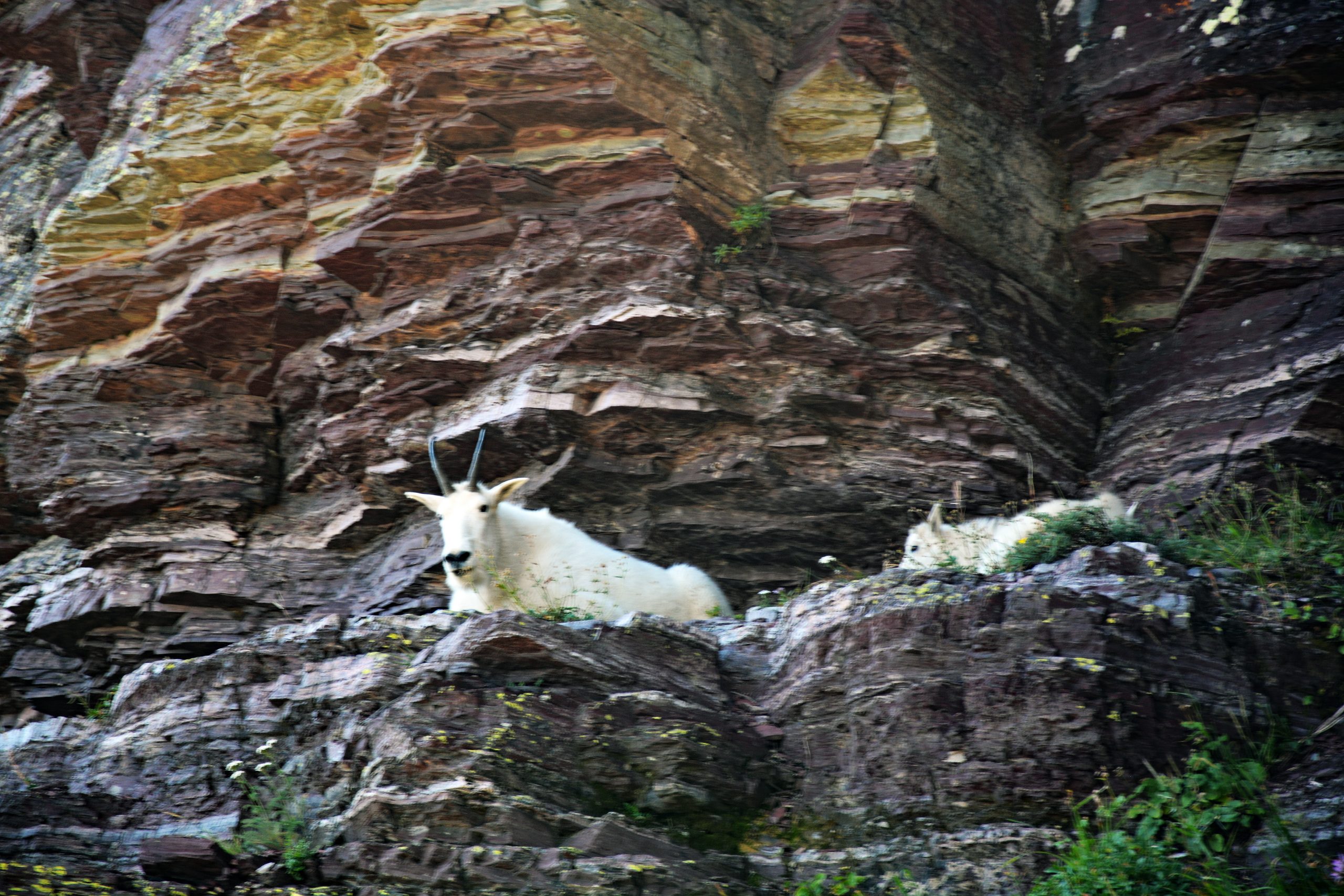 Der Abstieg brachte weitere Überraschungen. Vor mir öffnete sich das Tal in einer atemberaubenden Linie: Grinnell Lake in seinem leuchtenden Türkis, dahinter der dunklere Lake Josephine, und ganz hinten der silbrige Swiftcurrent Lake. Außerdem zeigte sich die Tierwelt von ihrer besten Seite. Ein Paar Schneegämsen standen auf einem Felsvorsprung. Im Wald bei Lake Josephine entdeckte ich mehrere Elche, einer davon direkt am Seeufer. Nur Bären fehlten an diesem Tag – obwohl ich den von vor drei Jahren, der am Parkeingang Beeren fraß, noch gut in Erinnerung hatte.