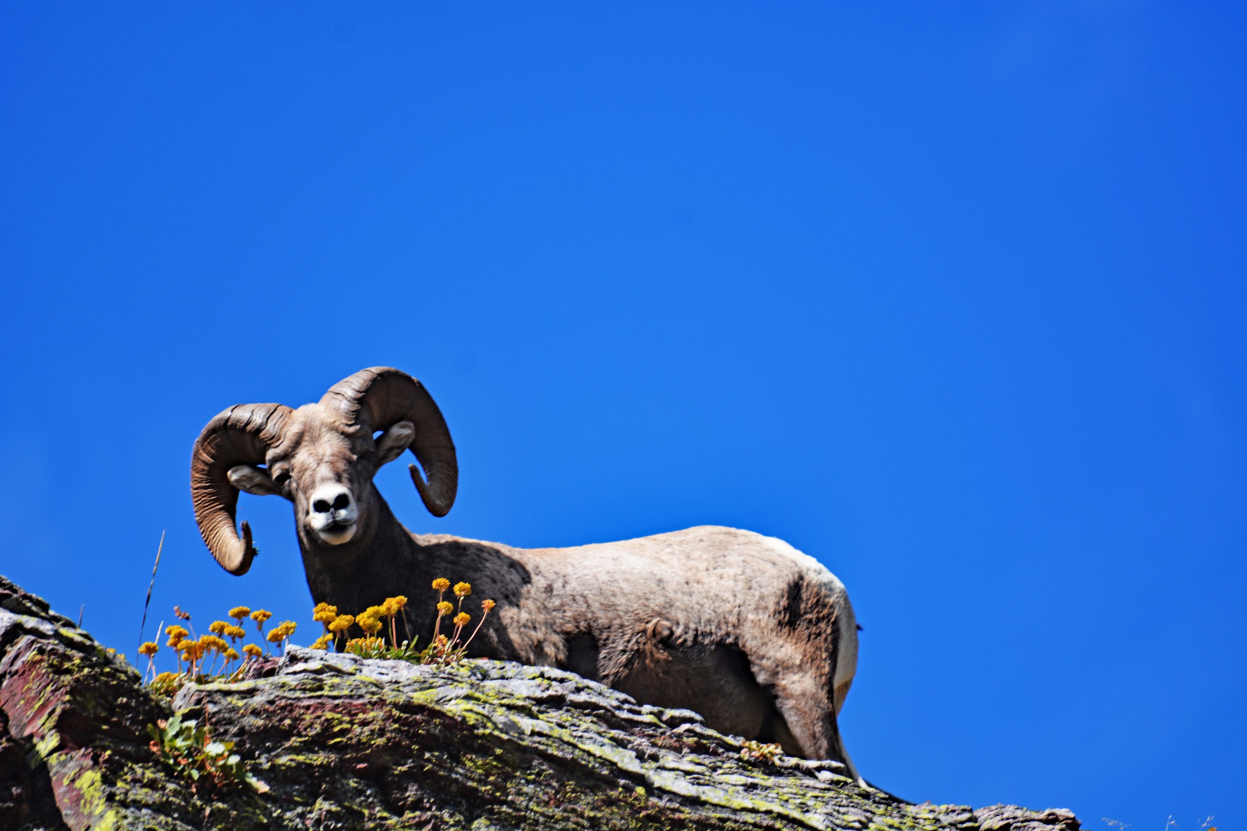 Nach einer langen Pause machte ich mich schließlich auf den Rückweg. Der Abstieg fühlte sich leicht an – zumindest bis ein plötzlicher „Stau“ auf dem Trail mich stoppte. Ein Dickhornschaf stieg den Pfad herauf. Die Wanderer vor mir blieben stehen, und das Tier kletterte ruhig auf einen Felsen neben dem Weg und beobachtete uns von oben.