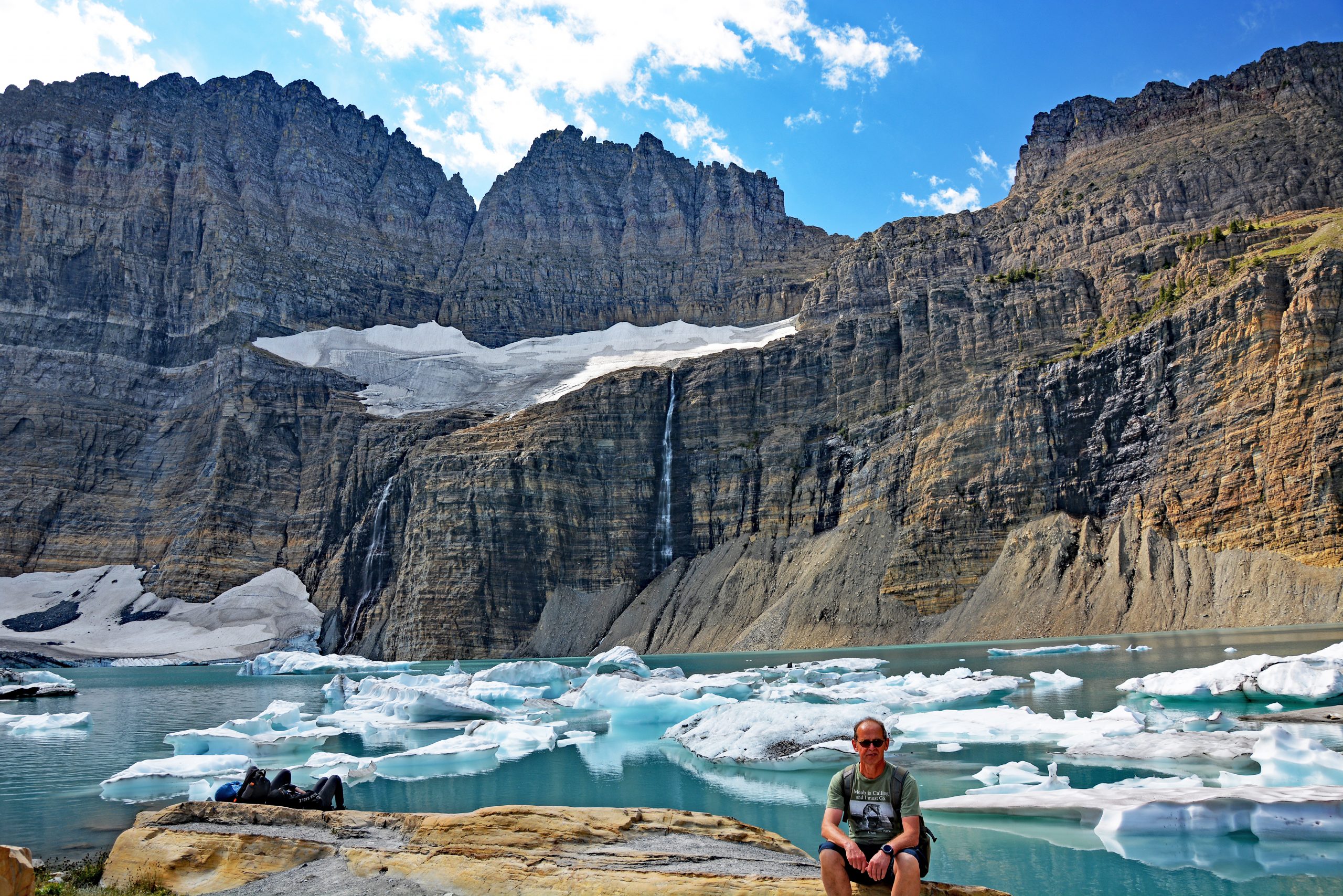 Unter mir lag der obere Grinnell Lake, auf dessen Oberfläche Eisschollen wie zerbrochenes Glas trieben. Vor mir erhub sich die Garden Wall wie eine Festung gezackter Gipfel. Links ragte Mount Gould, rechts klebte der kleine Gem Glacier wie ein letzter Rest der Eiszeit hoch an der Wand. Der Gletscher selbst – etwa 150 Acres groß – leuchtete blass unter dem wolkigen Himmel.