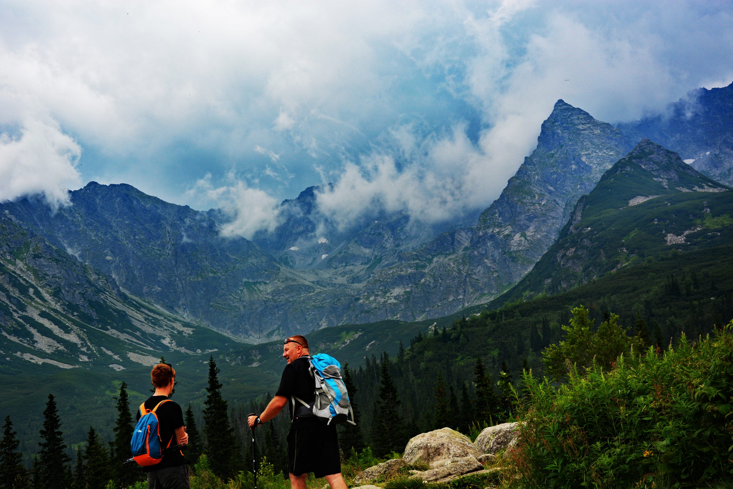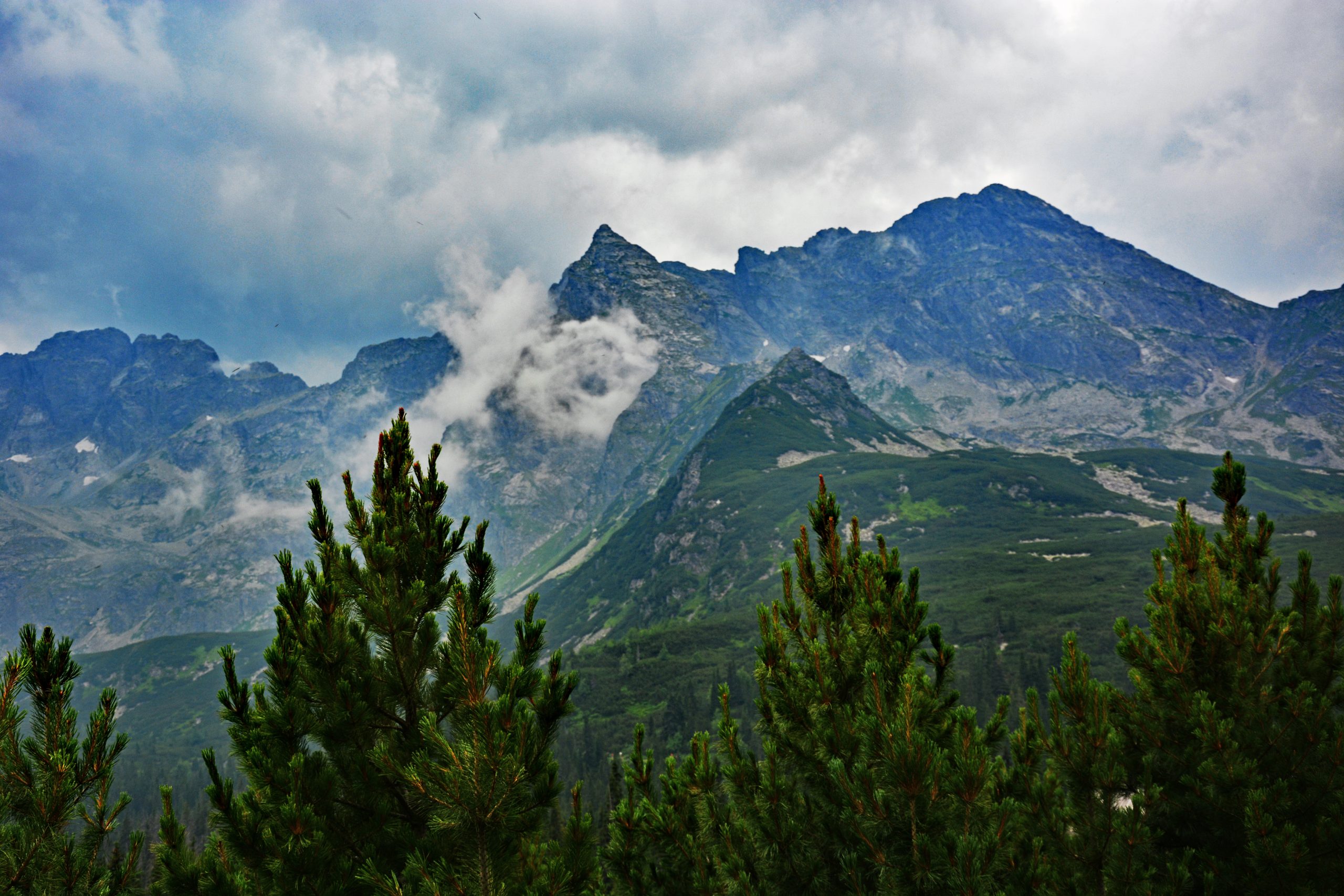Wir brachen früh in Kuźnice auf, noch umgeben von der kühlen, harzig duftenden Morgenluft des Waldes. Auf etwa 1.000 Metern über dem Meeresspiegel hatte der Tag seine Wärme noch nicht entfaltet, und das Sonnenlicht fiel weich durch die Fichten und Tannen. Der blaue und der gelbe Wanderweg führten uns stetig bergauf, während unter unseren Stiefeln Schotter und Steine rhythmisch knirschten. Über uns erhoben sich die Tatra-Berge wie eine mächtige Wand aus hellem Kalkstein und Dolomit, scharf gefaltet, zerbrochen und geformt durch uralte tektonische Kräfte.