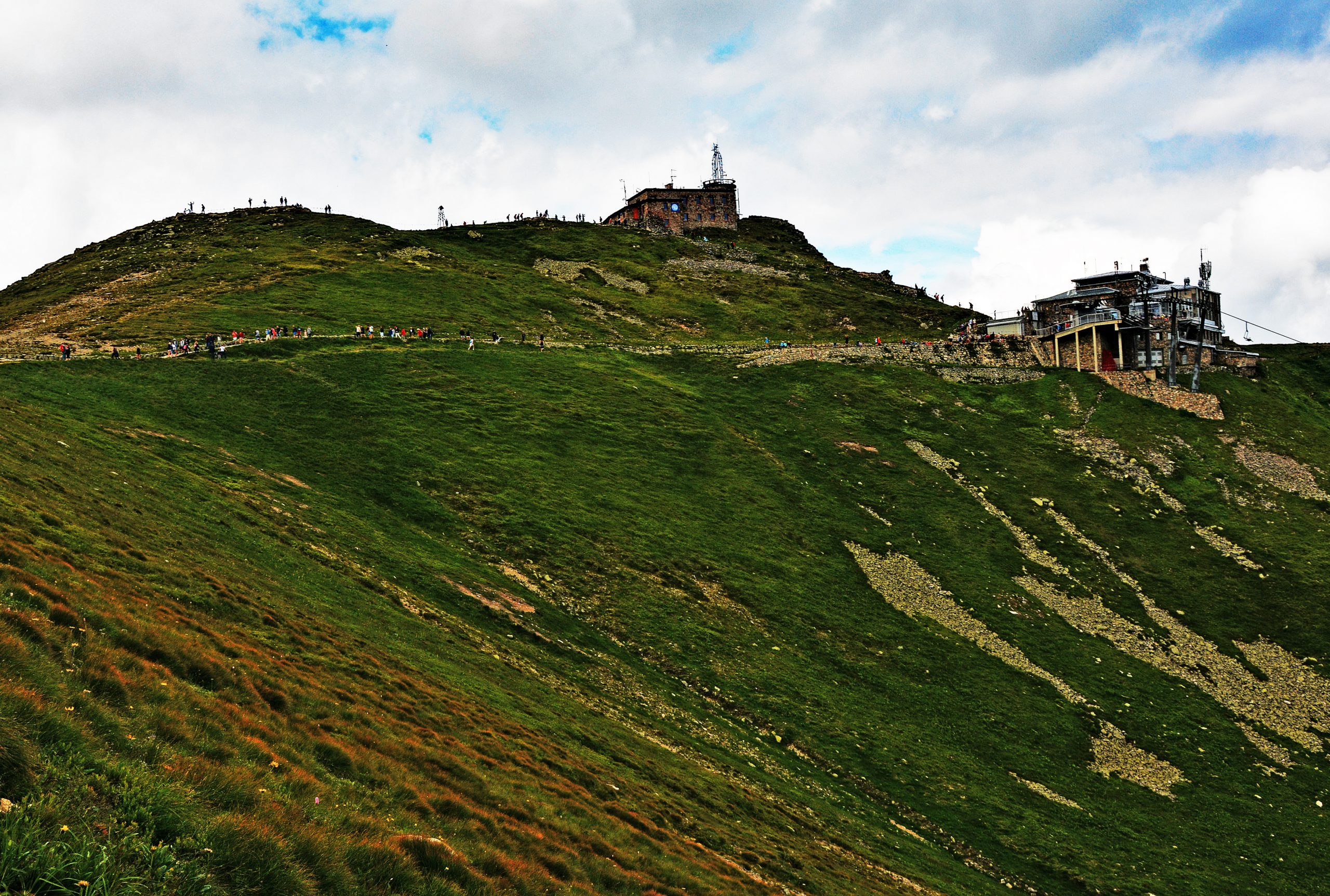 Der Aufstieg zum Kasprowy Wierch überraschte mich. Trotz meiner Hallux-Operationen an beiden Füßen im Winter zuvor kam ich schneller voran als erwartet. Der Weg stieg steil an, führte in Serpentinen über scharfkantigen Kalkstein und dunkleres metamorphes Gestein. Mit zunehmender Höhe öffnete sich der Blick zurück ins Tal, und der Wind wurde spürbar stärker. Auf 1.987 Metern erreichte ich schließlich den Gipfel.