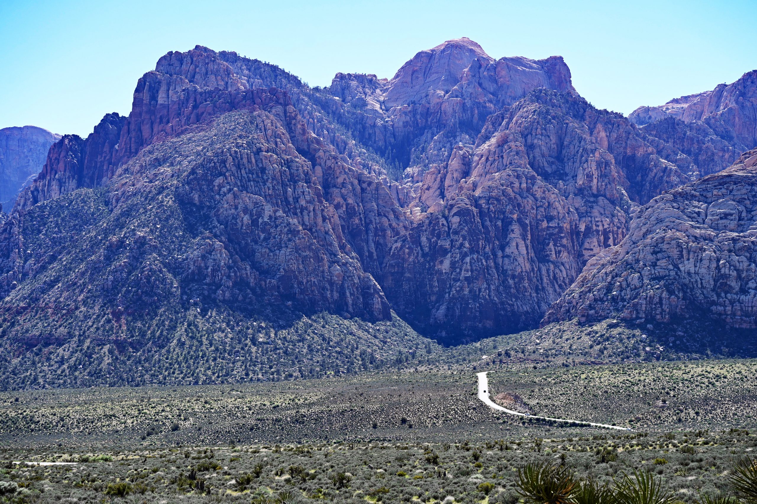 Der Morgen in Las Vegas fühlte sich bereits wie der Vorbote eines glühenden Tages an. Nachdem wir das Excalibur hinter uns gelassen hatten, holten wir unser treues Gefährt aus dem Self-Storage in der Robindale ab – ein kleiner Befreiungsschlag aus dem Trubel der Stadt. Unser Ziel: der Red Rock Canyon. Schon bei der Ankunft am Visitor Center spürten wir die trockene, klare Luft. Wir füllten unsere Vorräte auf, studierten kurz die Karte und tauchten dann ein in eine Welt, die wie von einem Riesen aus Farbtöpfen gegossen schien.